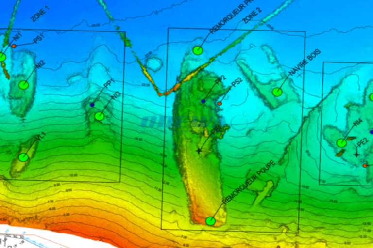 Diagnostic subaquatique pour déterminer les positions exactes des épaves, les pertes de fluides polluants, la composition de l’eau, définir les risques environnementaux et de sécurité dans le cadre de toutes les opérations à venir sur les épaves et aux alentours.
