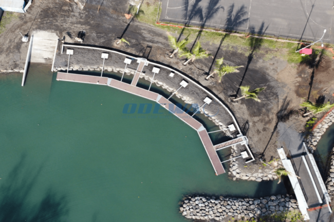 Dragage de la marina, réalisation du quai sur pieux, réalisation d’une cale de mise à l’eau, mise en place d’équipements et réalisation du système d’amarrage des navires